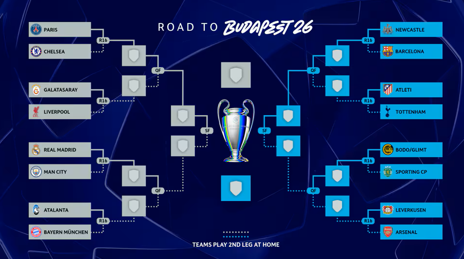巴黎与切尔西之间的胜者,将在八强战里对阵利物浦与加拉塔萨雷之间的胜者。切尔西(2次)、利物浦(6次)、巴黎(1次)已经9次夺冠。
