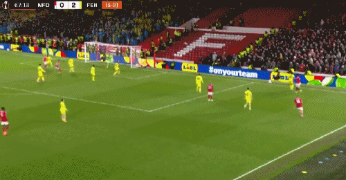 第68分钟,奥多伊禁区左路低射远角破门,森林1-2费内巴切