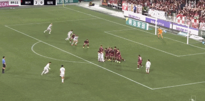 第90分钟,扳回一城,桥本悠任意球直接破门,福冈黄蜂1-2