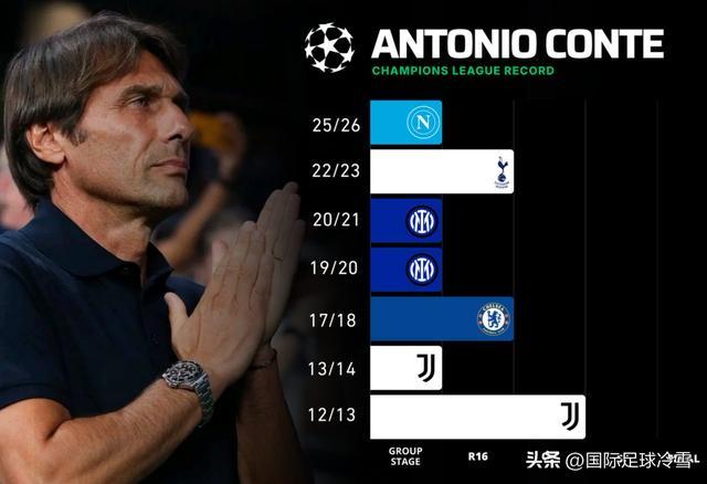 孔蒂执教尤文、切尔西、国米、热刺、那不勒斯出战欧冠7个赛季,4次小组赛出局,此外出战欧联杯、欧协联的3个赛季也未能有所斩获。总得来说,他率队出战欧冠50场,赢了17场,输了17场,这样的成绩单对一位豪强球队的教练来说绝对是不合格的。