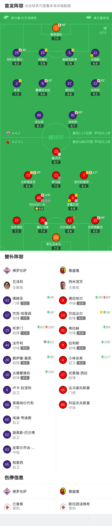 佛罗伦萨总比分5-4雅盖隆晋级,马祖雷克戴帽,法乔利破门