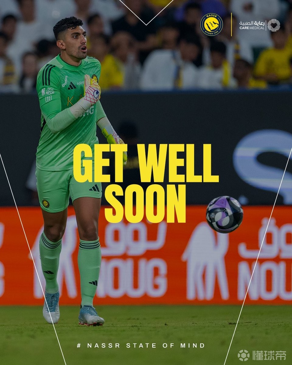 利雅得胜利官方发布的公告表示,现年29岁的拉赫德-纳贾尔在接受检查后被确定为膝盖前十字韧带撕裂,这名沙特门将将会因此接受手术,并且在手术过后进行康复治疗。