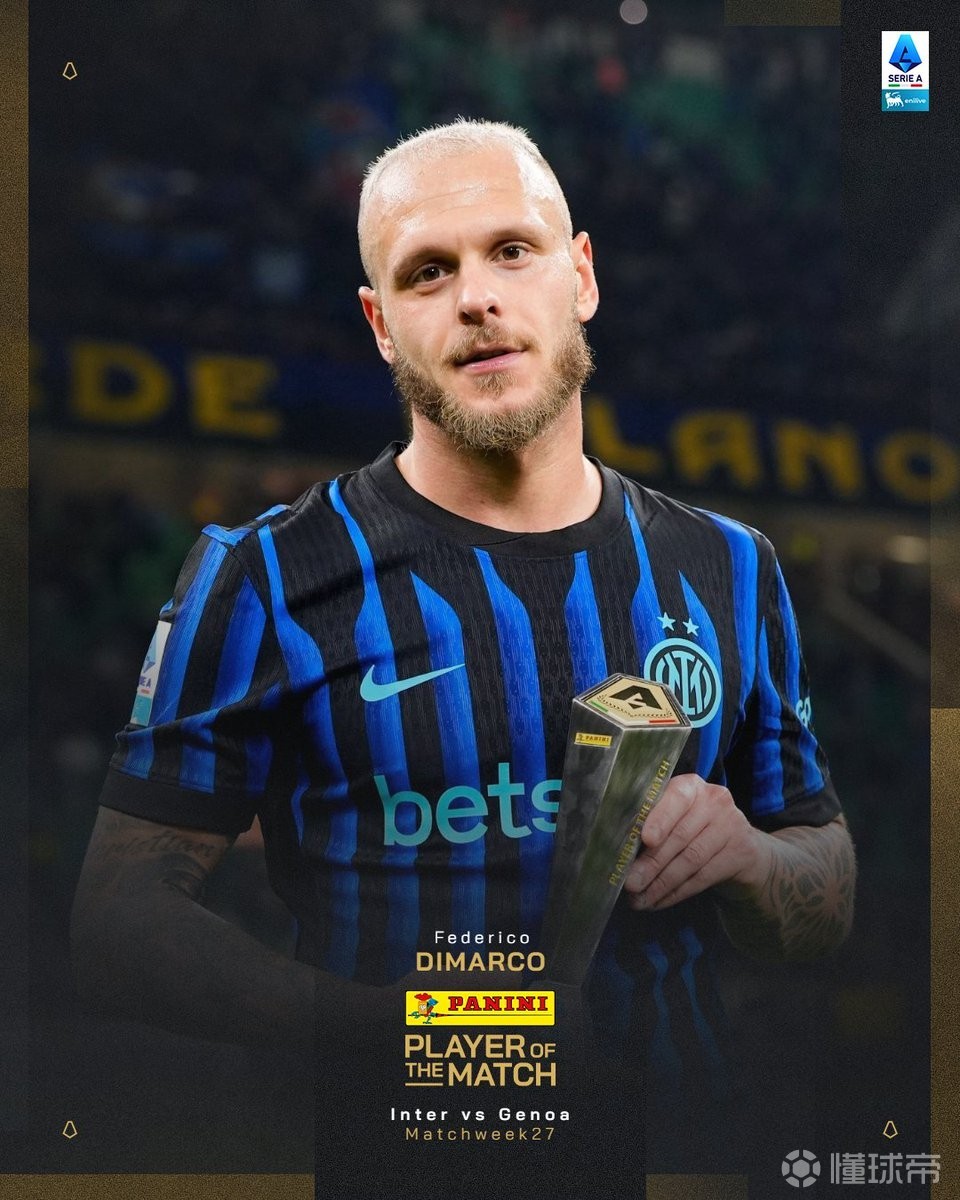 首开记录,迪马尔科当选国米vs热那亚全场最佳球员