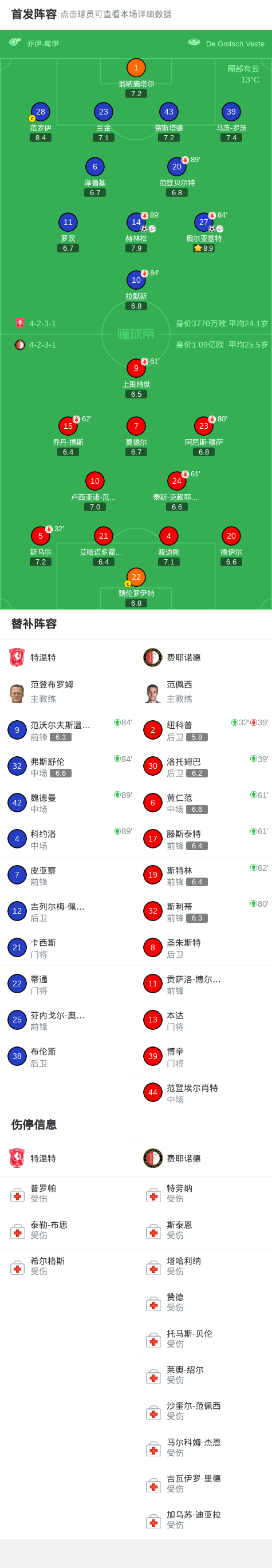 北京时间3月1日荷兰甲级联赛 联赛 第25轮,特温特主场对阵费耶诺德。特温特赫林松破门,奥尔亚塞特破门。最终比分特温特 2-0 费耶诺德。