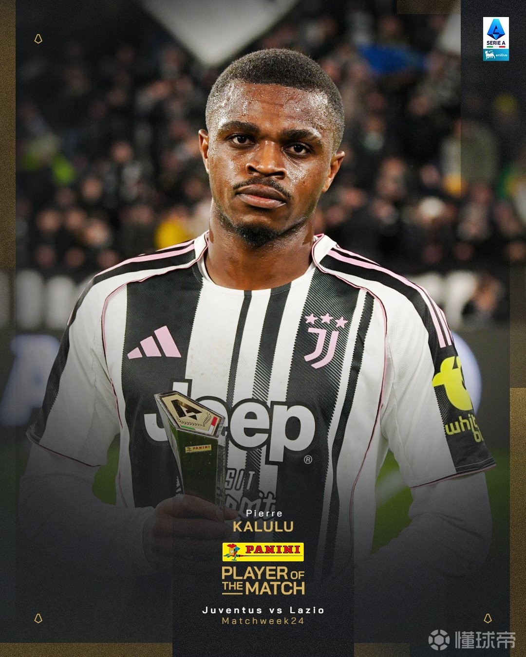 官方消息,卡卢卢当选尤文图斯对阵拉齐奥一役全场最佳。