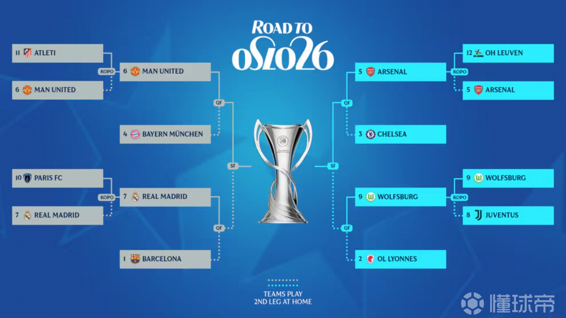 女足欧冠1/4决赛对阵