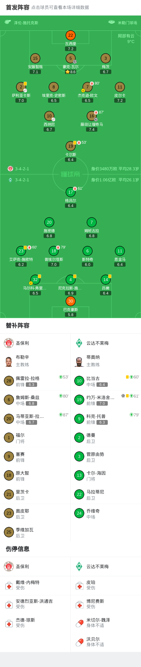 圣保利2-1云达不莱梅,藤田让瑠奇马、豪克-瓦尔破门