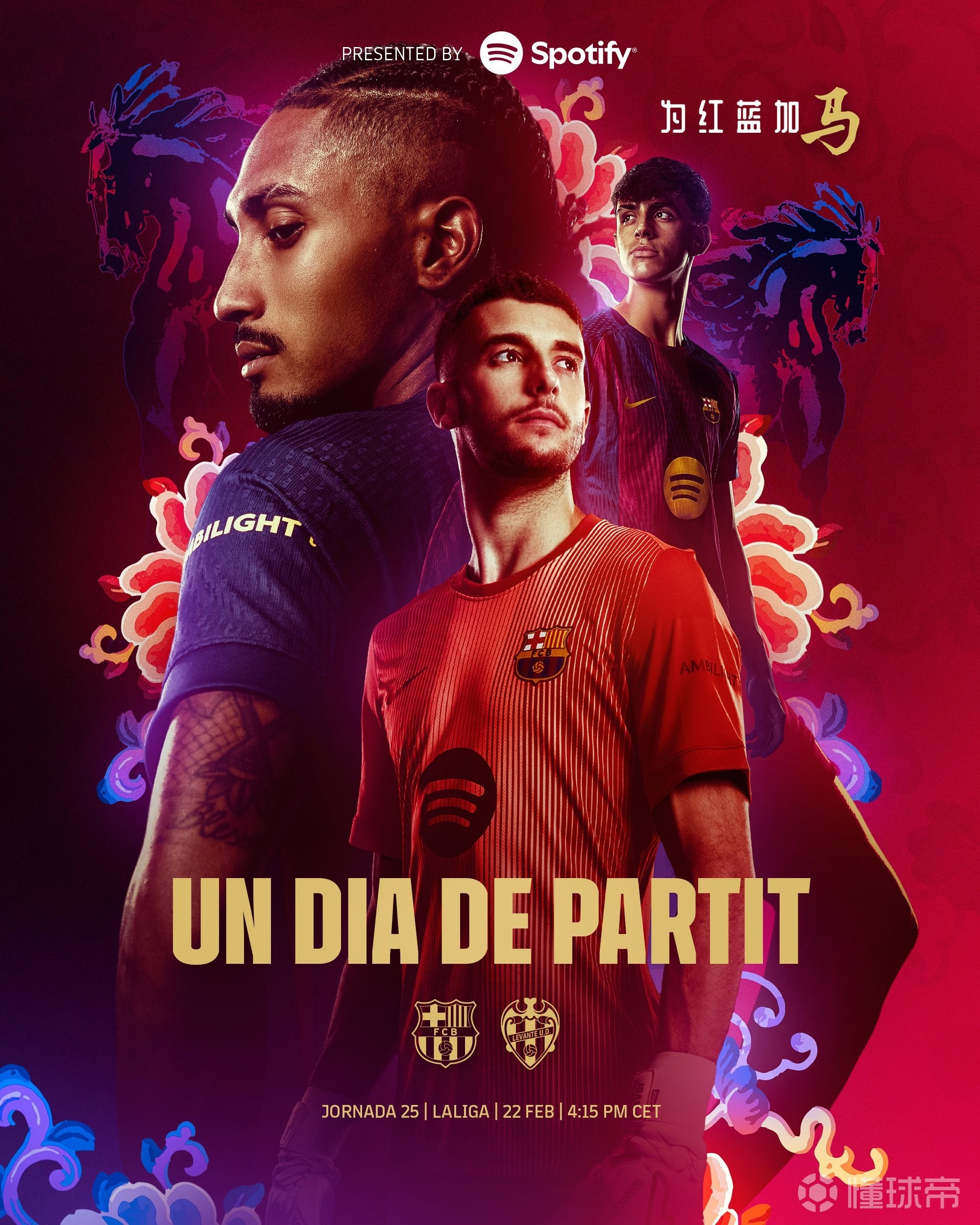 为红蓝加“马”,巴萨对阵莱万特赛前发布马年中文主题海报