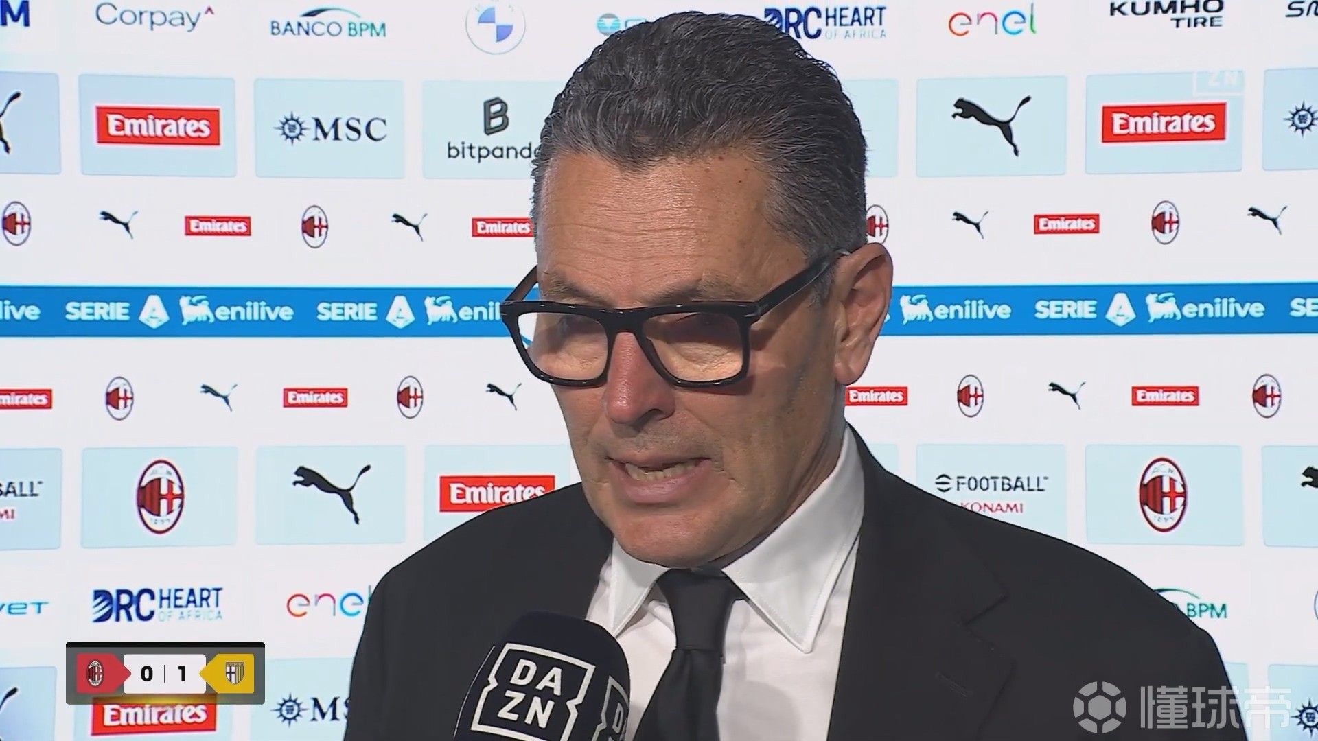 米兰在意甲第26轮主场0-1负于帕尔马,代替被禁赛的主教练阿莱格里进行指挥的助理教练兰杜奇在赛后接受了DAZN的采访。