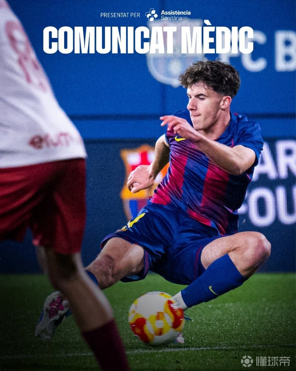 官方消息,巴萨后卫霍夫雷-托伦茨左脚踝联合韧带受伤,预计伤缺10-12周。