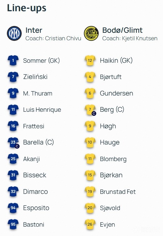 北京时间2月25日凌晨4点,欧冠淘汰赛附加赛次回合展开一场焦点战役,国米对阵博德闪耀。赛前,双方公布首发阵容。