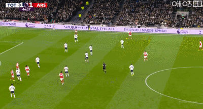 在英超第27轮的北伦敦德比中,双方上半场战成1-1平。第47分钟,廷贝尔右路将球送到弧顶,皮球穿越了6名防守球员,送到了弧顶处哲凯赖什的脚下。埃泽在前点与德拉古辛对抗,身后的哲凯赖什无人防守,停球后一记势大力沉的抽射挂入死角,令门将无可奈何!