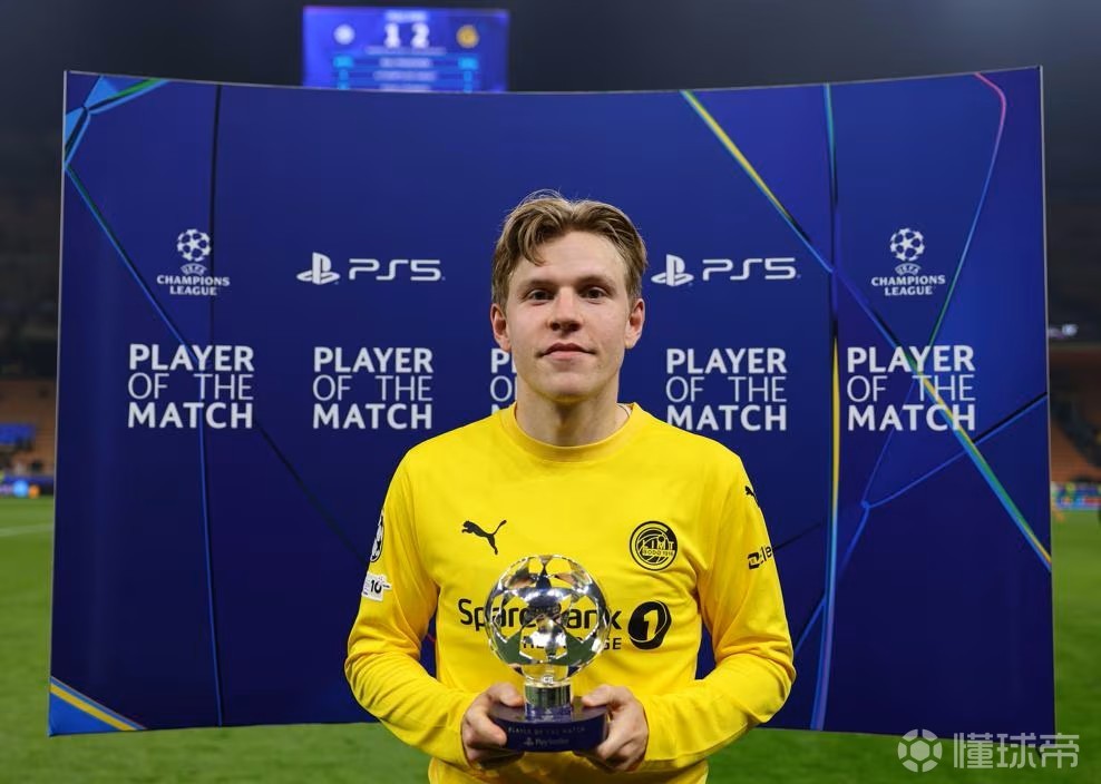 欧冠淘汰赛附加赛次回合,博德闪耀客场2-1击败国米,海于格传射建功,当选全场最佳球员。