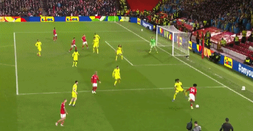 第68分钟,奥多伊禁区左路低射远角破门,森林1-2费内巴切
