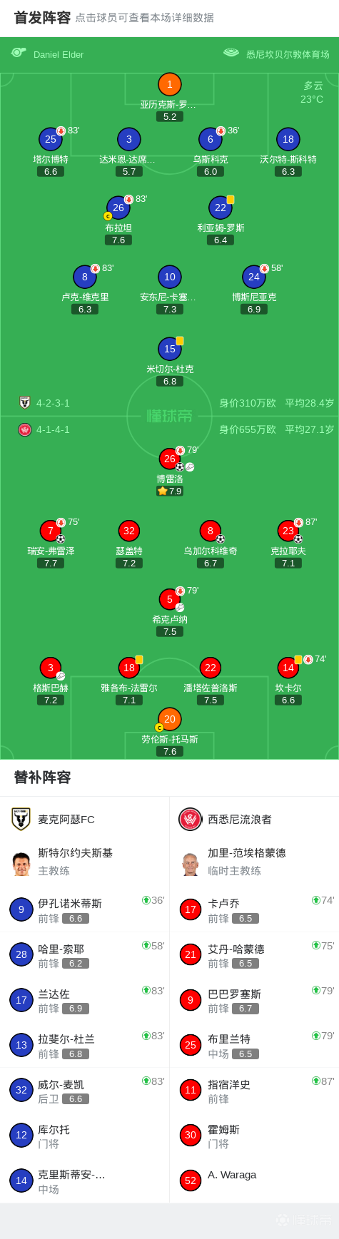 第24分钟,麦克阿瑟FC接应球员被主裁判阻挡,克拉耶夫反击破门,西悉尼流浪者2-0!
