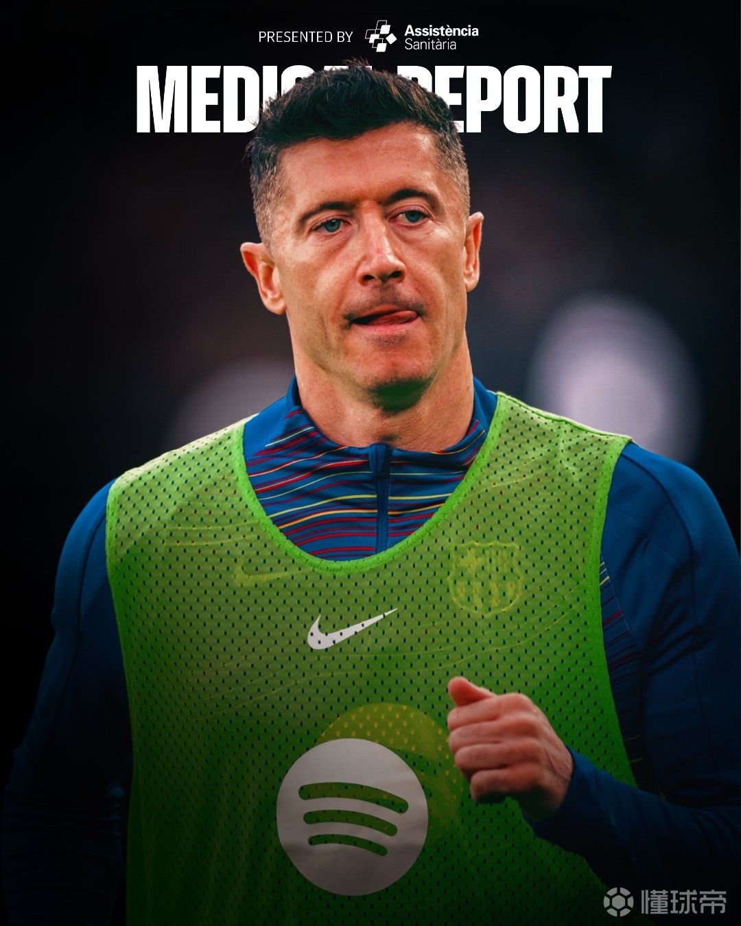 巴萨官方:莱万眼眶骨折,缺席对阵马竞的国王杯比赛