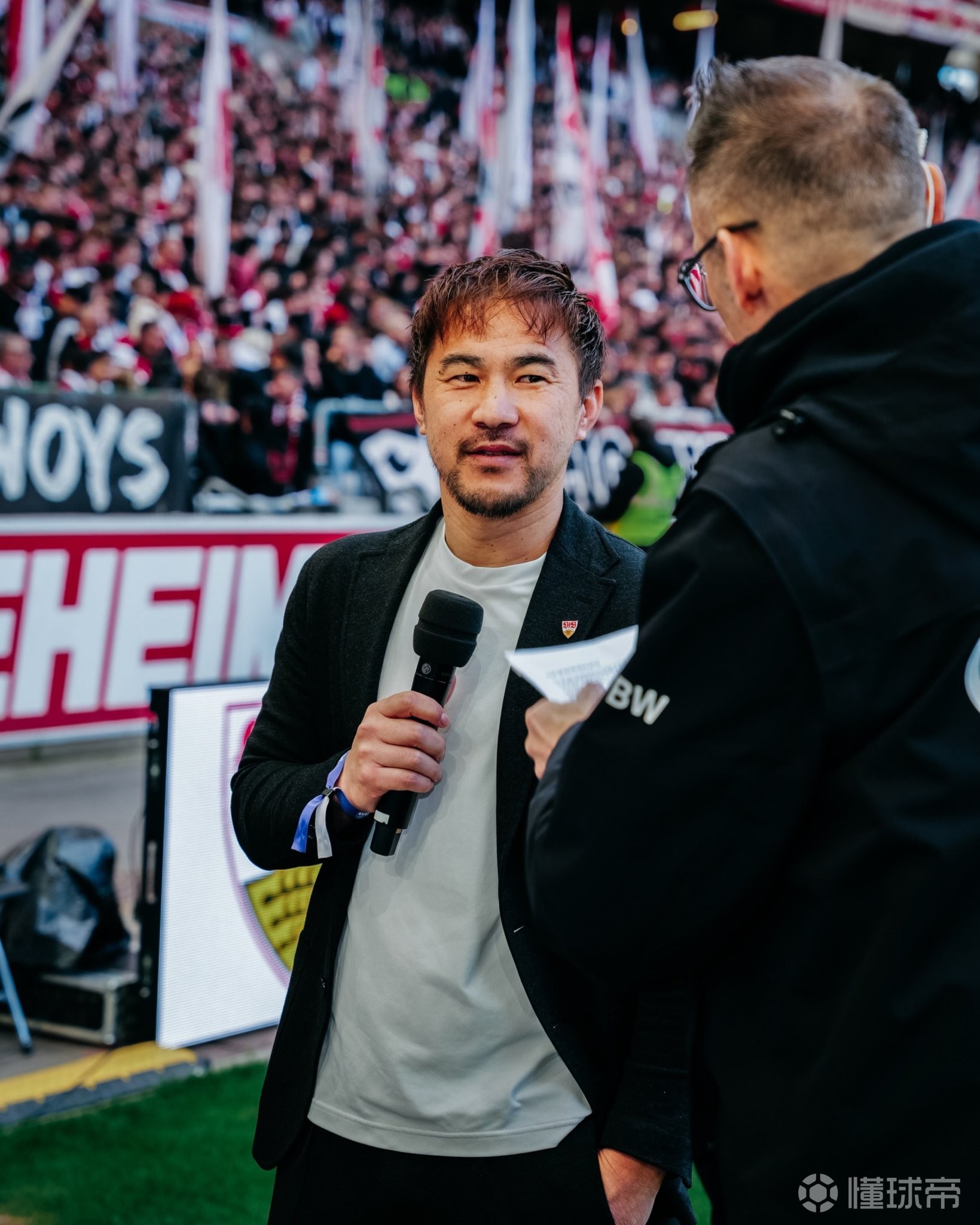 据悉,本场比赛,日本前国脚、斯图加特旧将冈崎慎司来到现场观看了本场比赛,并且在场边接受了采访。
